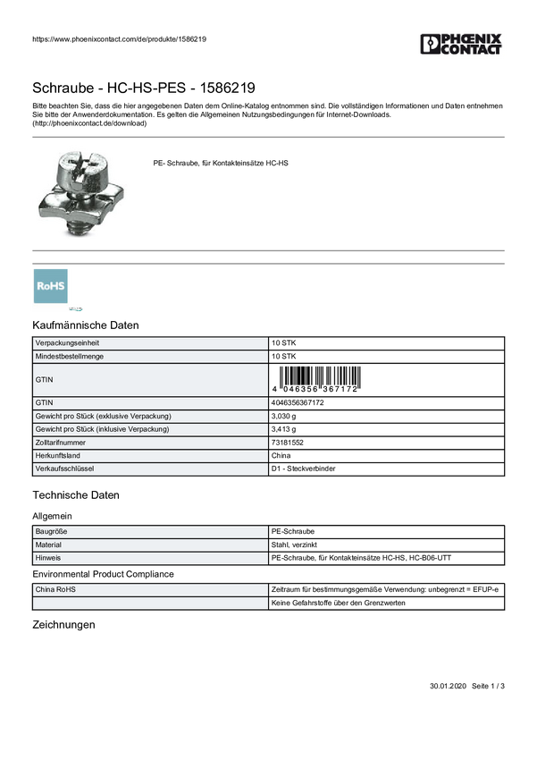Phoenix Contact HC-HS-PES 1586219 Złącze przemysłowe Zawartość: 10 szt.
