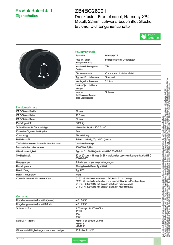 Schneider Electric ZB4BC280 Element przedni z przyciskiem 1 szt.