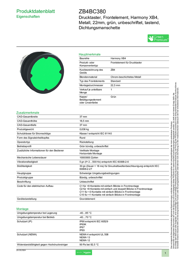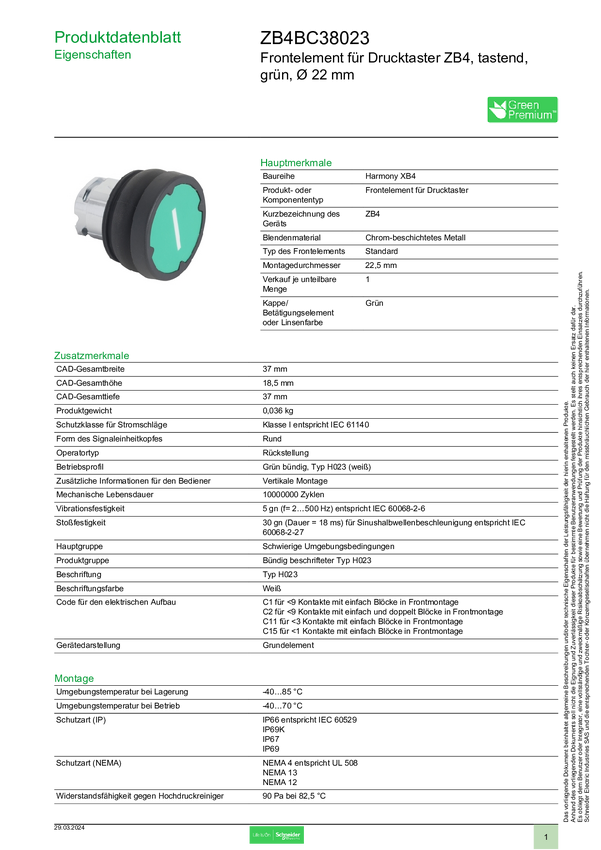 Schneider Electric ZB4BC38023 Element przedni z przyciskiem 1 szt.