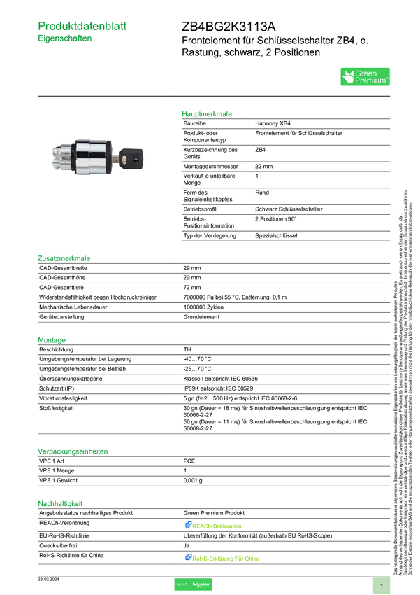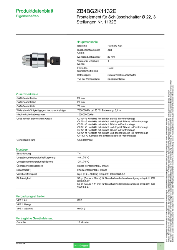 Schneider Electric ZB4BG2K3221E Element przedni z przyciskiem 1 szt.