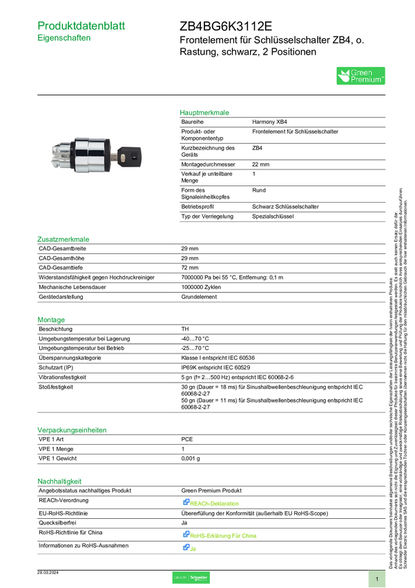Schneider Electric ZB4BG6K3112E Element przedni z przyciskiem 1 szt.