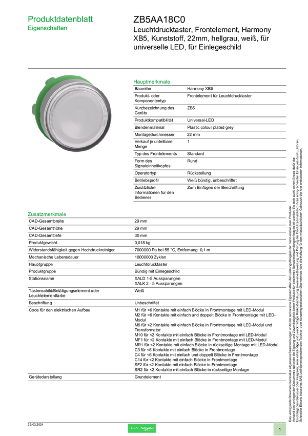 Schneider Electric ZB5AA131 Element przedni z przyciskiem 1 szt.