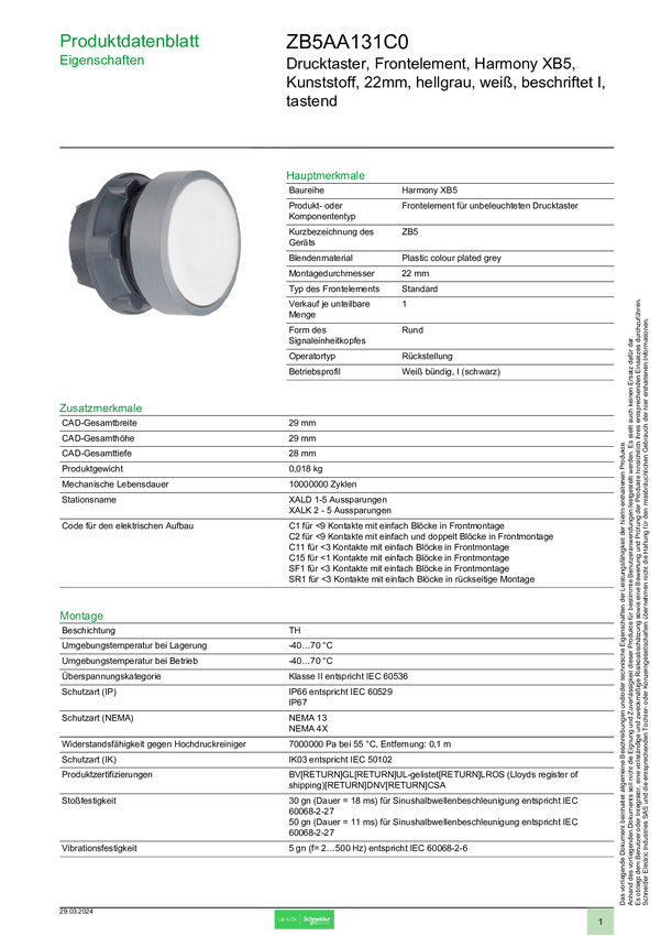 Schneider Electric ZB5AA131C0 Element przedni z przyciskiem 1 szt.