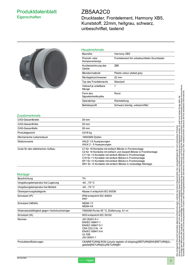 Schneider Electric ZB5AA234 Element przedni z przyciskiem 1 szt.