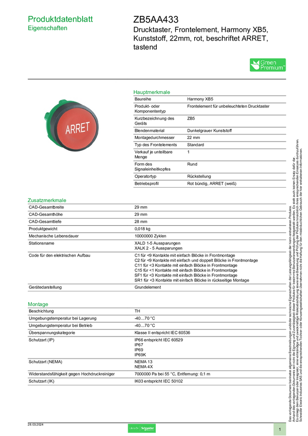 Schneider Electric ZB5AA433 Element przedni z przyciskiem 1 szt.