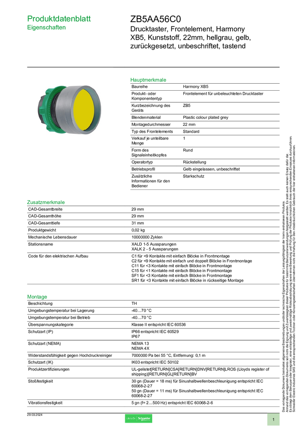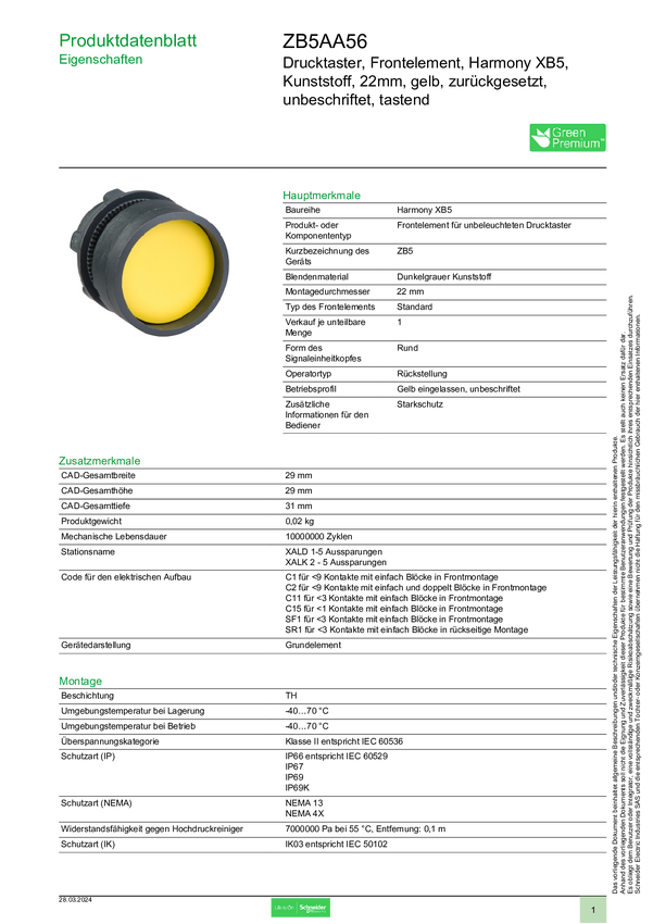 Schneider Electric ZB5AA56 Element przedni z przyciskiem 1 szt.