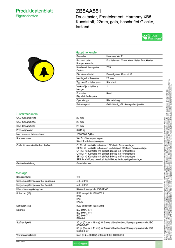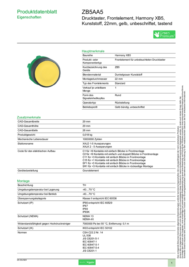 Schneider Electric ZB5AA551 Element przedni z przyciskiem 1 szt.