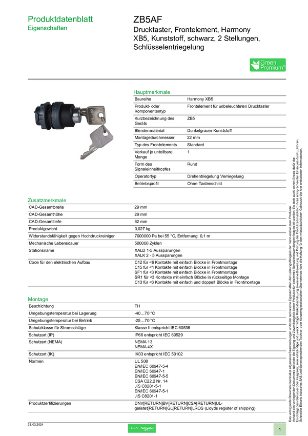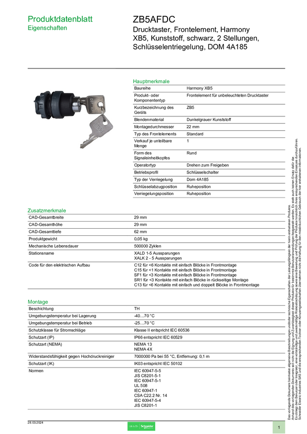Schneider Electric ZB5AFDA Element przedni z przyciskiem 1 szt.