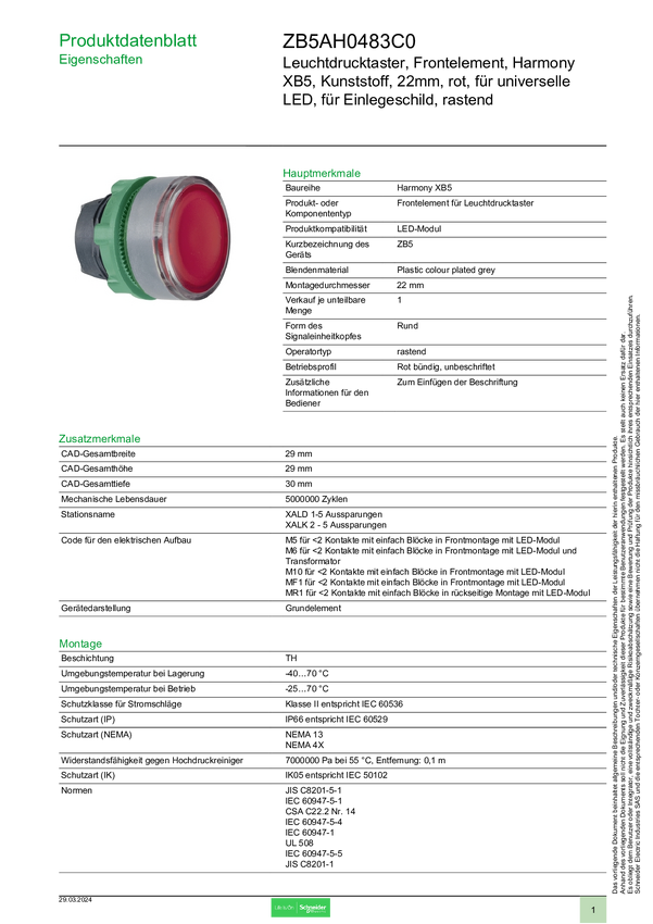Schneider Electric ZB5AH0483C0 Element przedni z przyciskiem 1 szt.
