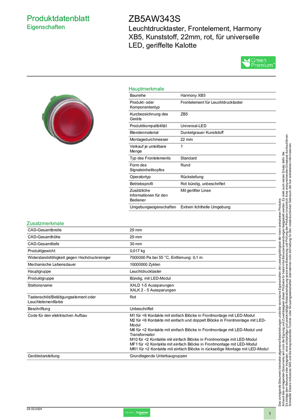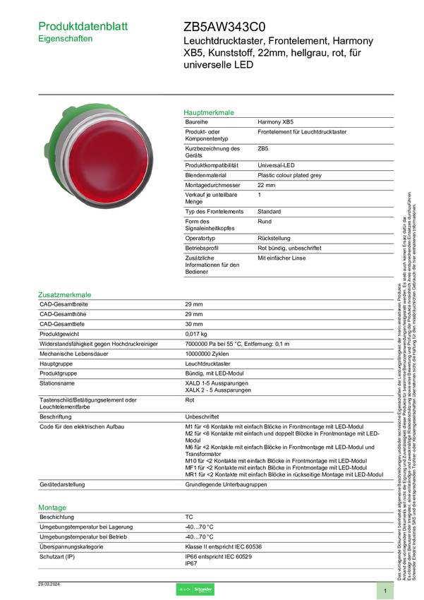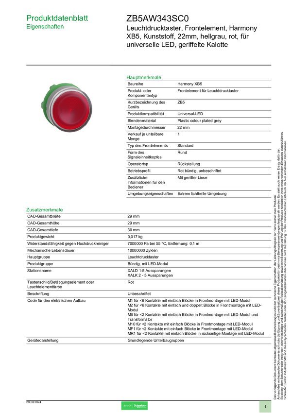 Schneider Electric ZB5AW343SC0 Element przedni z przyciskiem 1 szt.