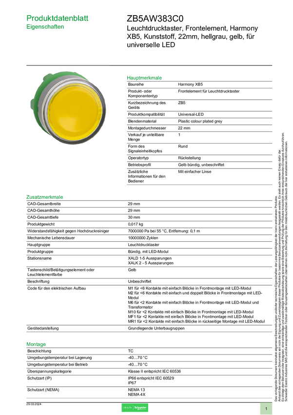 Schneider Electric ZB5AW383SC0 Element przedni z przyciskiem 1 szt.