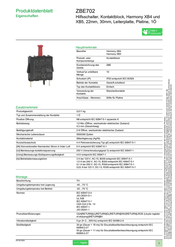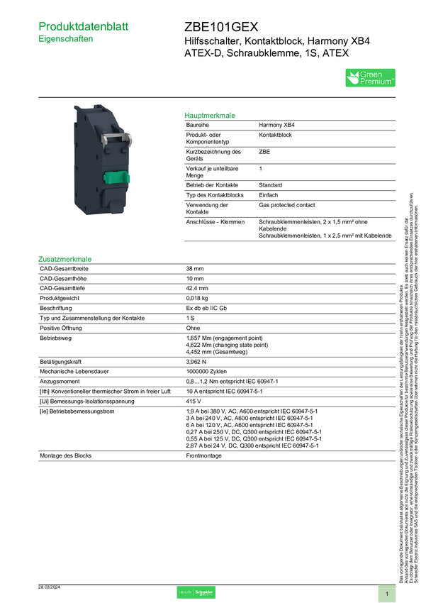 Blok przełączający Schneider Electric ZBE101GEX, 1 szt.
