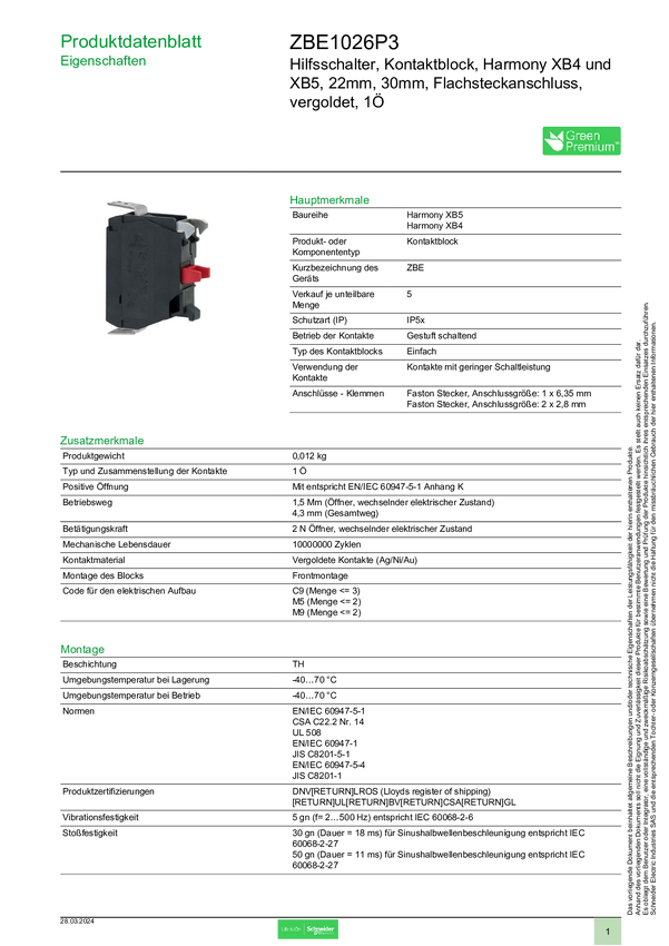 Schneider Electric ZBE1026P3 Blok przełącznika pomocnicznego 5 szt.