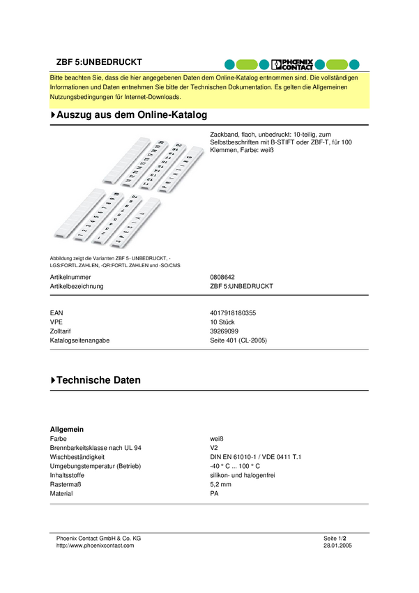 Pasek do etykietowania Phoenix Contact ZBF 5:UNBEDRUCKT 0808642, 1 szt.