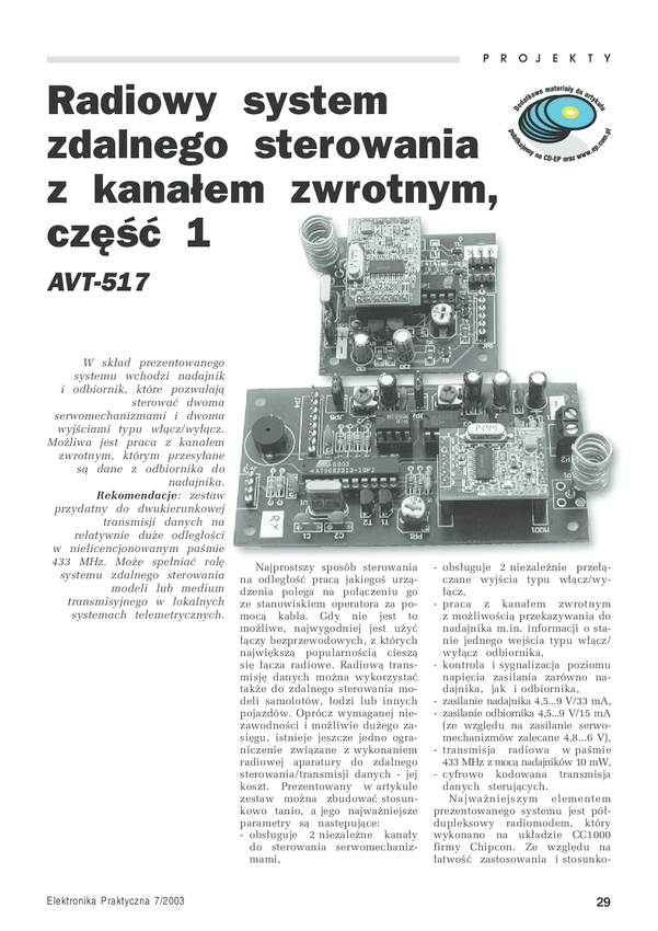 AVT517 A+ Radiowy system zdalnego sterowania z kanałem zwrotnym - płytka drukowana i zaprogramowany układ