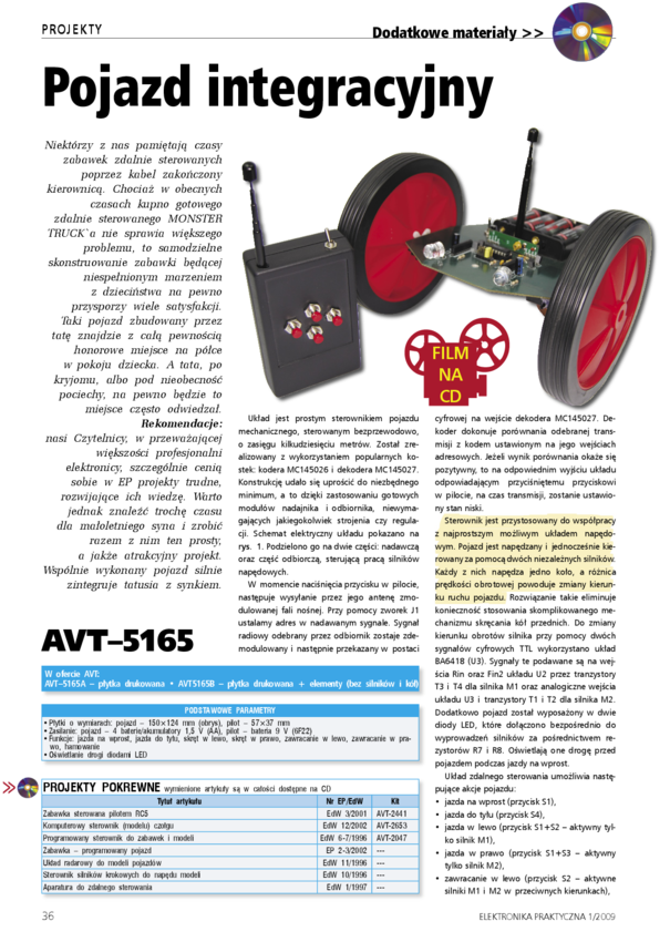 AVT5165 B Zdalnie sterowany pojazd-zabawka - zestaw do samodzielnego montażu