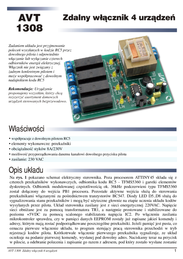 AVT5046 UK Zdalnie sterowana karta przekaźników - zaprogramowany układ