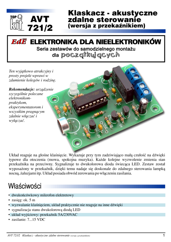 AVT721/2 Klaskacz - akustyczne zdalne sterowanie - wersja z przekaźnikiem