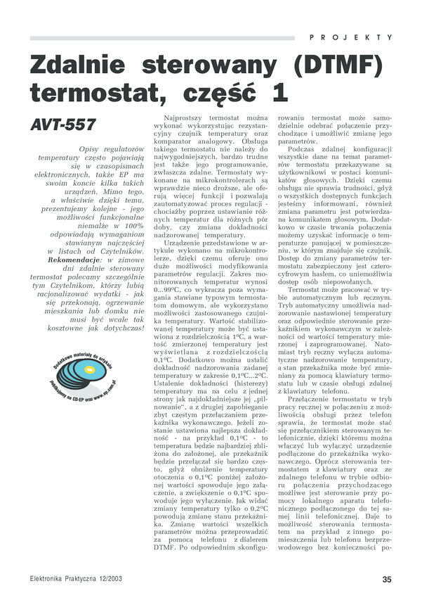 AVT557 Termostat zdalnie sterowany przez telefon (DTMF)