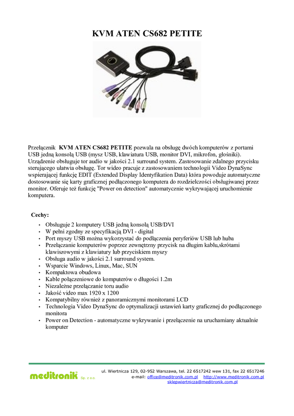 2-portowy przełącznik USB kabla DVI KVM ze zdalnym selektorem portu- ATEN CS22