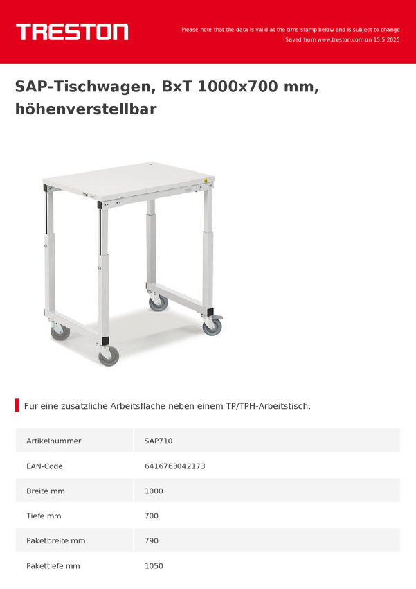 Treston SAP710 produkt uniwersalny Wózek magazynowy stal jasnoszary