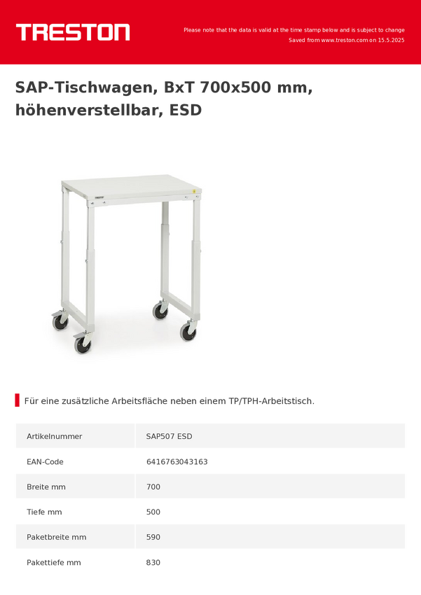 Treston SAP507 ESD ESD Wózek magazynowy stal Maksymalne obciążenie: 22 kg jasnoszary