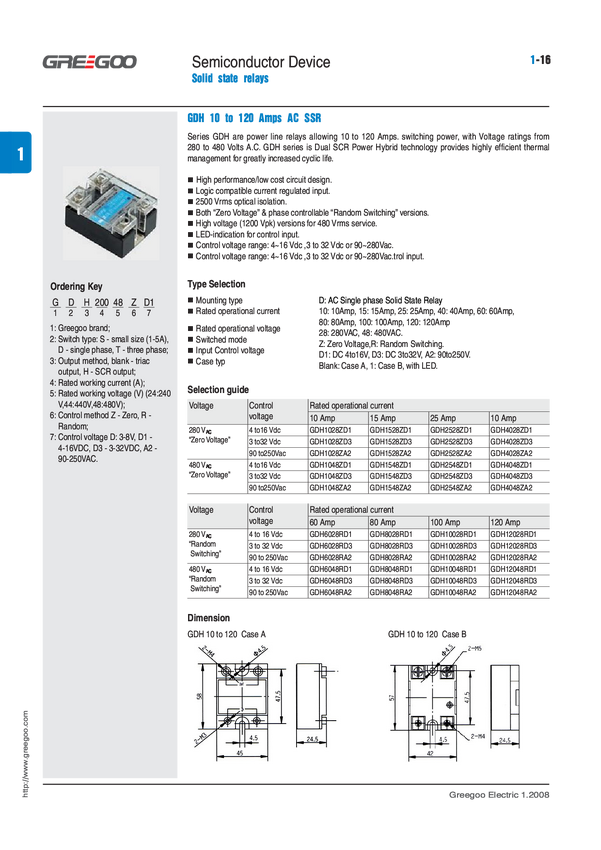 Przekaźnik; SSR (półprzewodnikowy); 1-fazowy; GDH5048ZD3; 3÷32V; DC; 50A; 48÷480V; AC; przełączanie w zerze; SCR (tyrystor); śrubowy na panel; 1 styk zwierny; Greegoo; RoHS