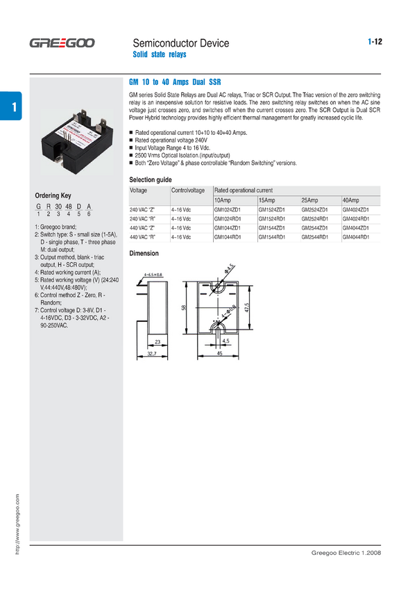 Przekaźnik; SSR; 2-wyjściowy; GM4044ZD1; 4-16V DC; 2x40A; 44-440V AC; przełączanie w zerze; SCR (tyrystorowy); 2 styki zwierne