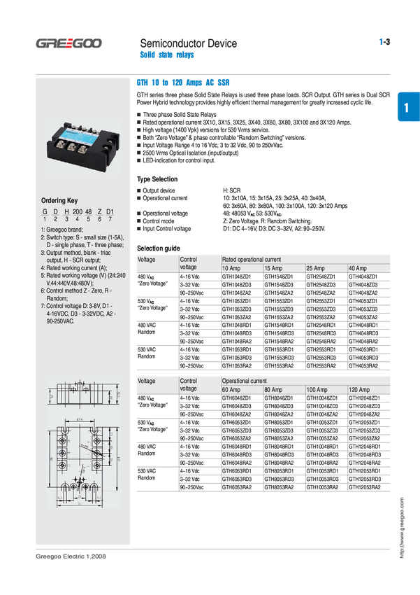 Przekaźnik; SSR (półprzewodnikowy); 3-fazowy; 3-32V; DC; 60A; 53÷530V; AC; przełączanie w zerze; SSR (tyrystor); śrubowy na panel; 3 styki zwierne; GTH6053ZD3; GREEGOO; RoHS
