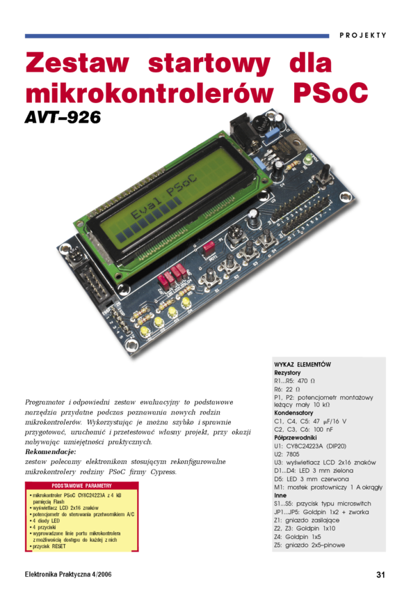 AVT926 Zestaw startowy dla mikrokontrolerów PSoC
