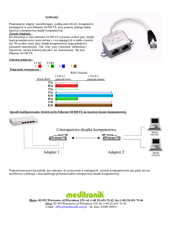 Adapter UTP do zestawienia 2 torów ethernet na jednym kablu