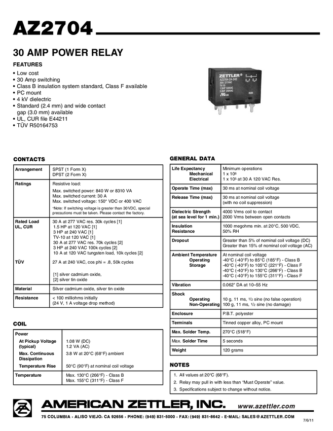 Przekaźnik dużej mocy Zettler Electronics AZ2704-2A-12DTWF, max 840 W/8310 VA