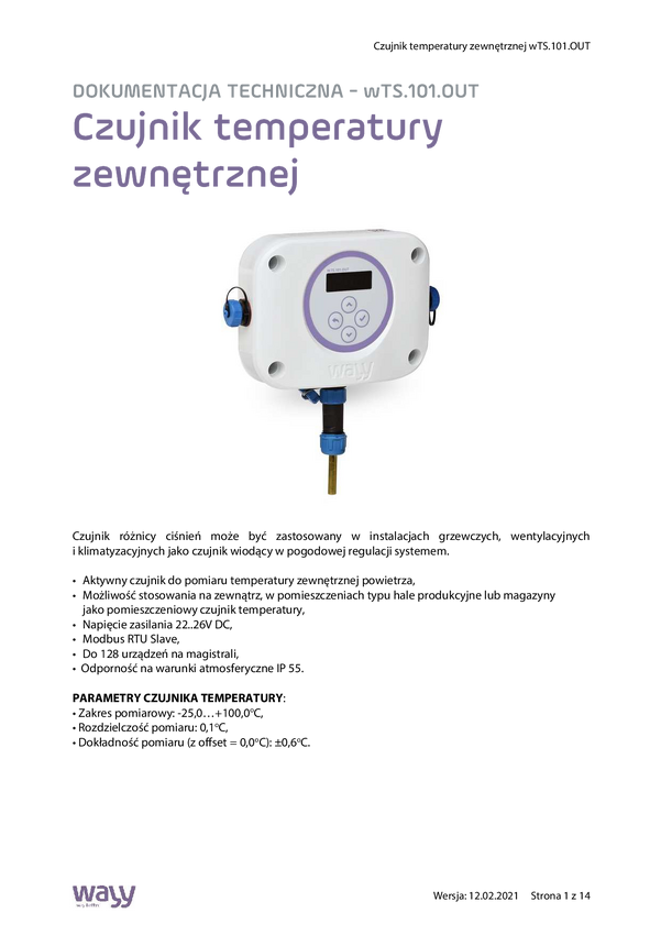 Czujnik temperatury zewnętrznej wTS.101.OUT