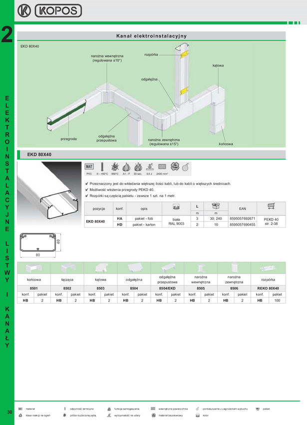 Narożnik zewnętrzny do listwy 80x40 biały