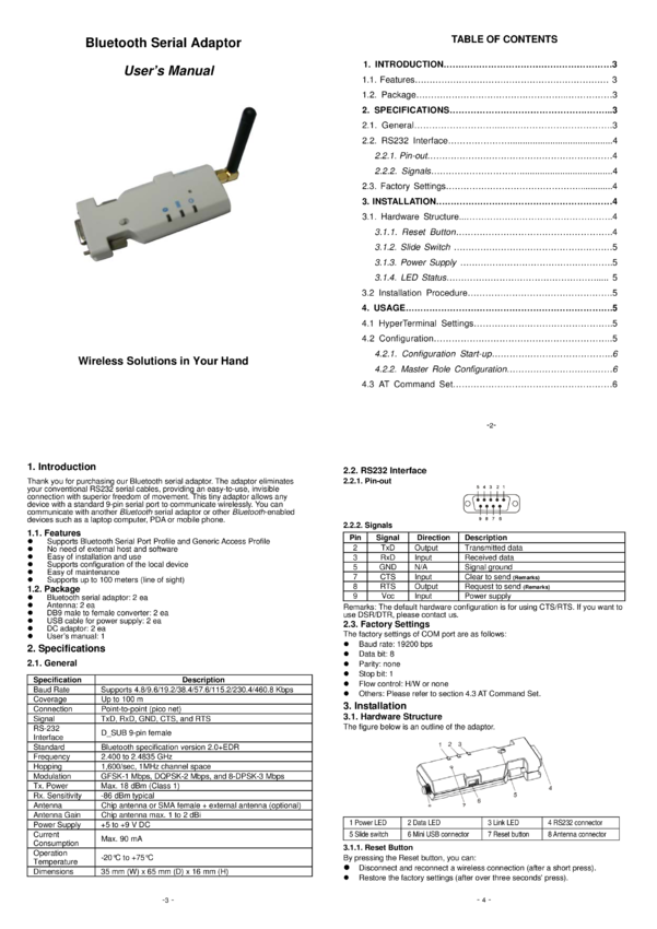 Adapter RS232-Bluetooth, , zewnętrzna antena. Prędkość transmisji 4800bps-460800bps, Rayson