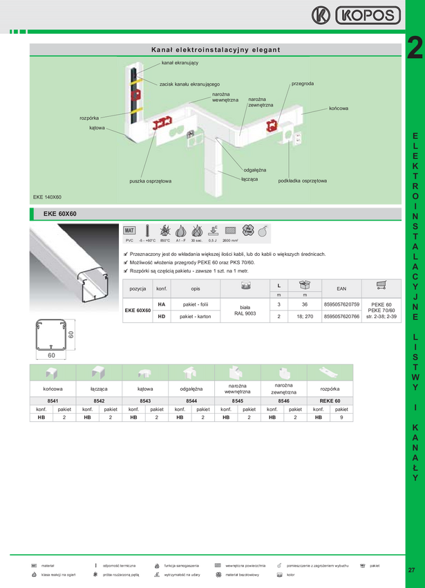 Narożnik zewnętrzny do listwy 60x40 biały 8656