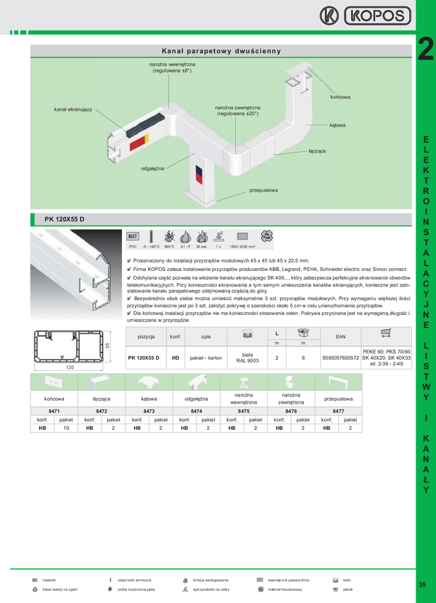 Narożnik zewnętrzny do listwy 120x55 biały 8476