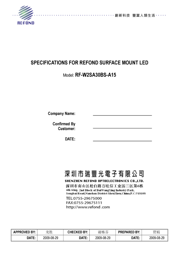 Dioda LED , [czerwona: 620-630nm, 140-200mCd; zielona: 520-530nm, 600-800mCd; niebieska: 565-475nm], 200-310mCd, 20mA/chip, water clear, 120°, , Refond