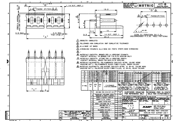 Złącze męskie do druku AMP280609-1, pionowe, 2-pin, zielone, 3.96mm, do gniazda AMP280590 (!)