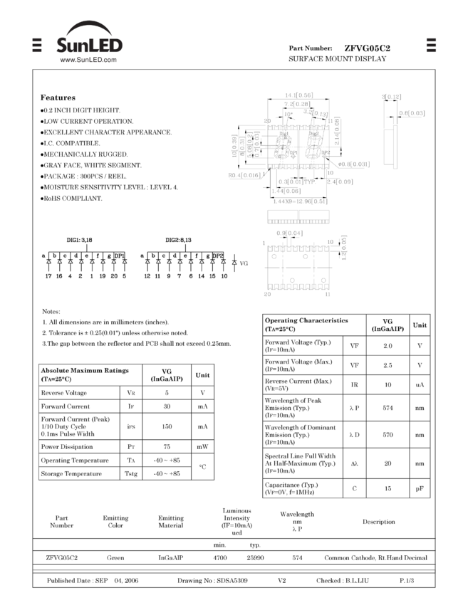 Wyświetlacz LED, SMT, 2-cyfry, 0.2" (5.08mm), zielony, wspólna katoda, szare tło, dyfuzyjny, statyczny, 10x14.1mm