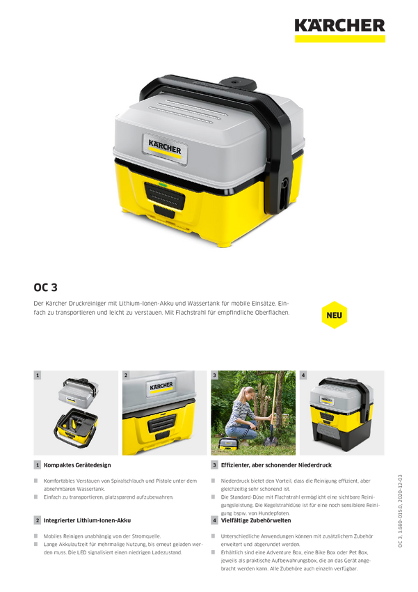 Kärcher Home & Garden Mobile Outdoor Cleaner OC3 + Adventure Mobilna stacja czyszcząca z akumulatorem Zimna woda