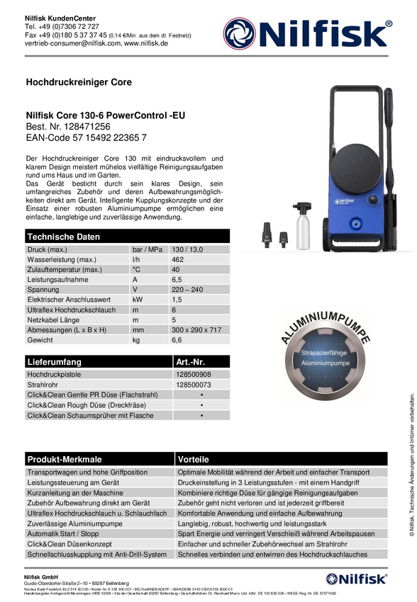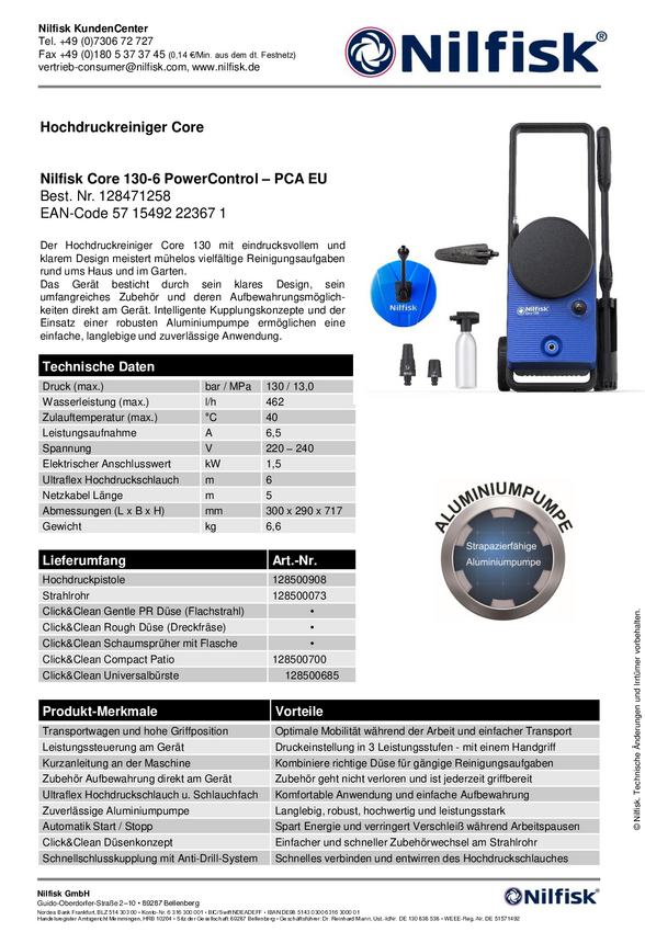Nilfisk Core 130-6 PowerControl - PCA EU Myjka ciśnieniowa 130 bar Zimna woda