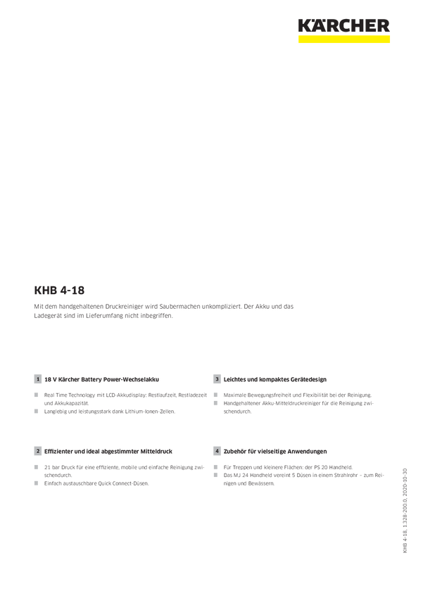 Kärcher Home & Garden KHB 4-18 *INT Myjka ciśnieniowa 21 bar Zimna woda