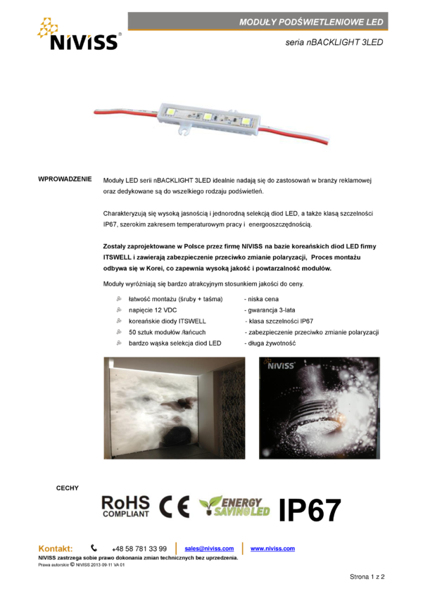 Moduł LED. 3x LED PLCC Itswell, biały zimny 6500K, 12V, Niviss