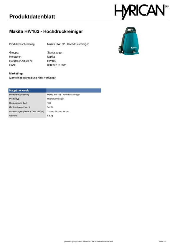 Makita Myjka ciśnieniowa 100 bar Zimna woda