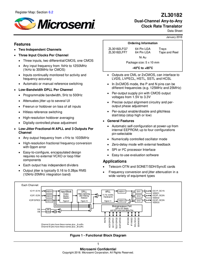 ZL30260-63 - 1 APLL, 6- or 10-Output Any-to-Any Clock Multiplier and Frequency Synthesizer