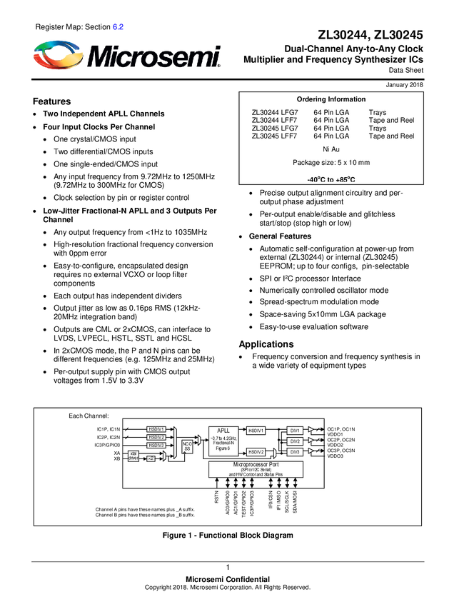 ZL30260-63 - 1 APLL, 6- or 10-Output Any-to-Any Clock Multiplier and Frequency Synthesizer
