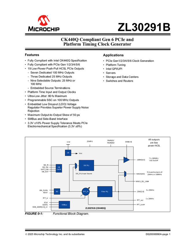 ZL30291B - CK440Q Compliant Gen 6 PCIe and Platform Timing Clock Generator