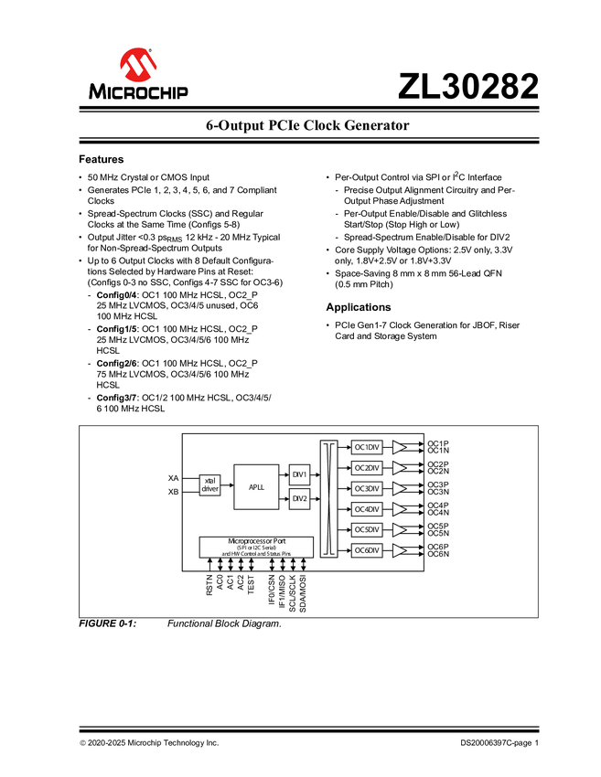 ZL30292 - PCIe Gen 1/2/3/4/5/6 Clock and Platform Timing Generator