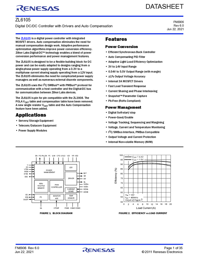 Adaptive Digital DC/DC Controller with Drivers and Current Sharing